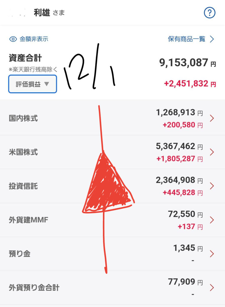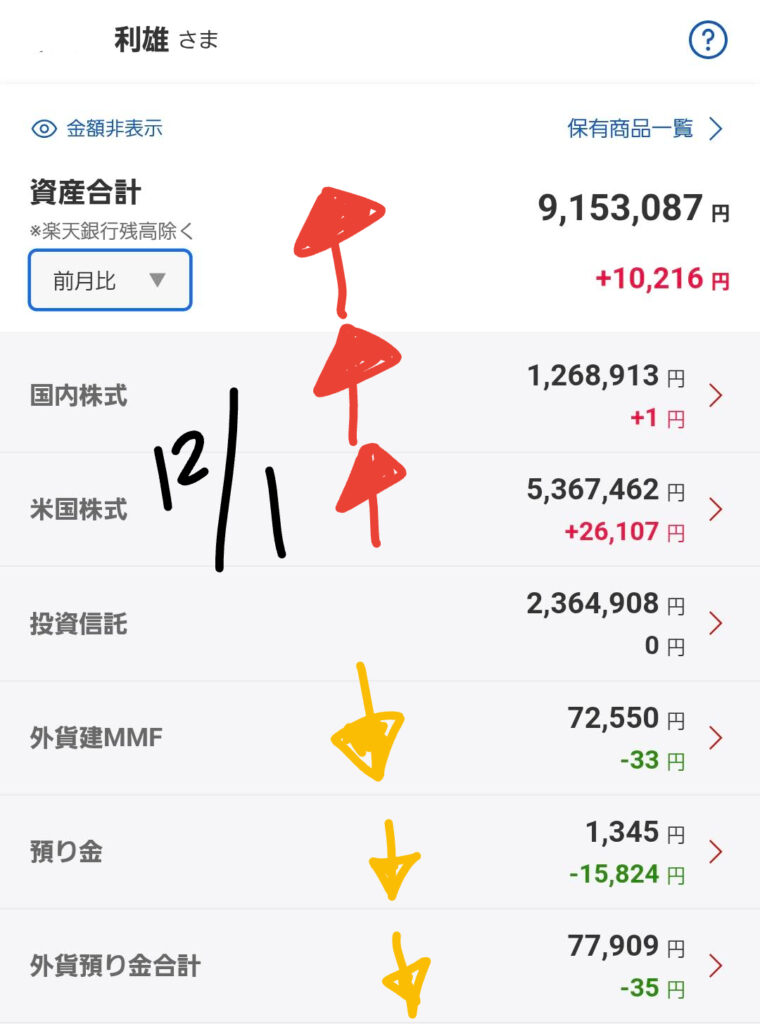 資産合計9,153,087円+20,886円 ⬆️+10,216円 ⬆️+2,451,832円