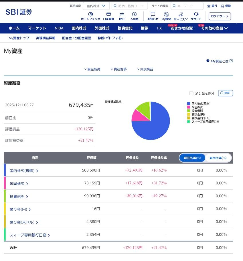 ご覧いただきありがとうございます!投資家として活動しているの、2025年12月1日時点のポートフォリオ状況と、前日の市場の動きを解説していきます。