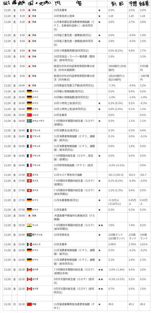 11/28 22:30第3四半期国内総生産(GDP)(前期比)★★★-1.6% (-1.8%)-0.5%2.6%