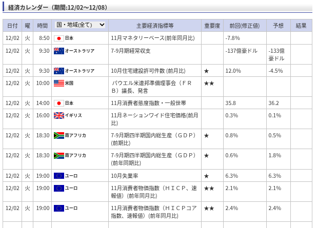 - 本日最も重要なイベントです。議長が、景気減速懸念に対してどのような見解を示すか、また、利上げ停止や来年の利下げについて示唆するかどうかで、市場のムードは一変します。