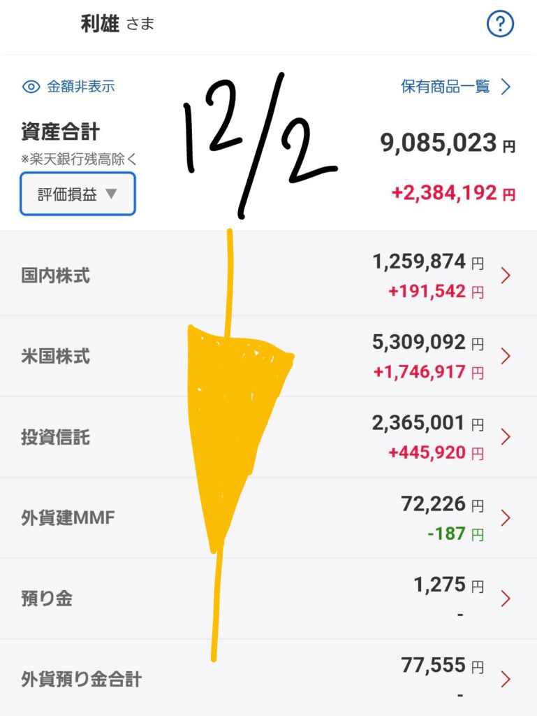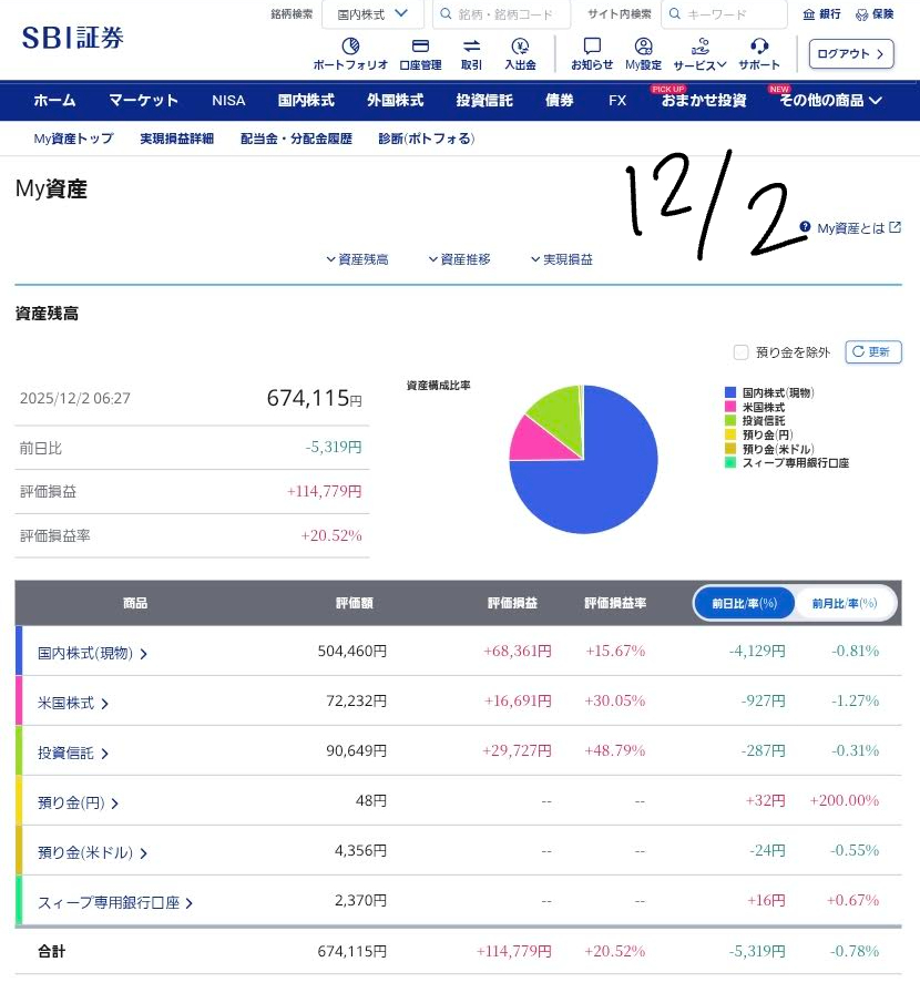📉 2. 私のポートフォリオ資産状況(12月2日時点)