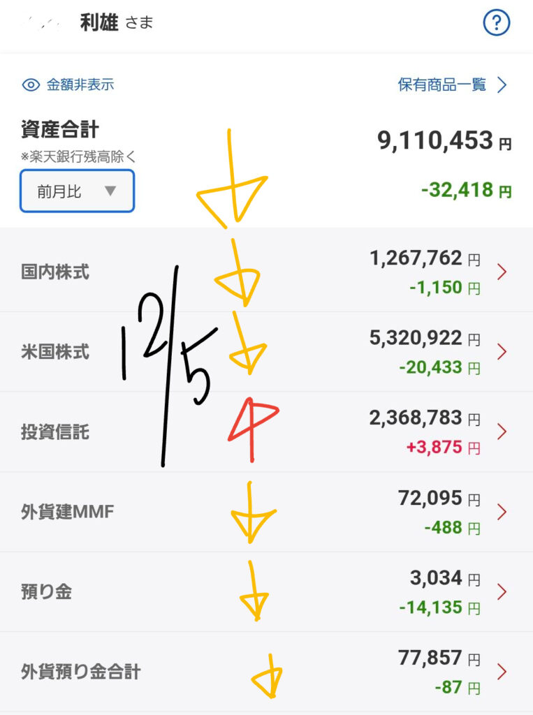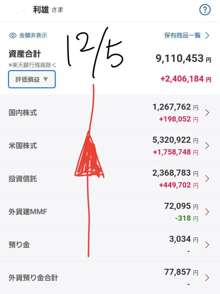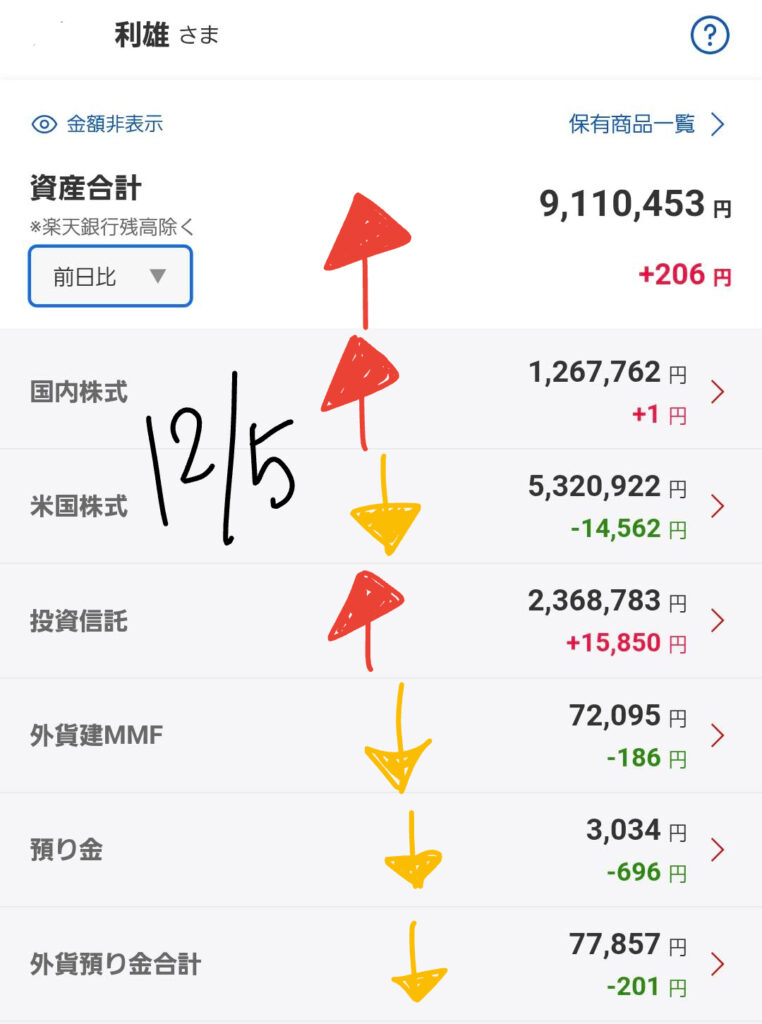 12月5日、私の資産合計はわずかですがプラス圏で着地することができました。