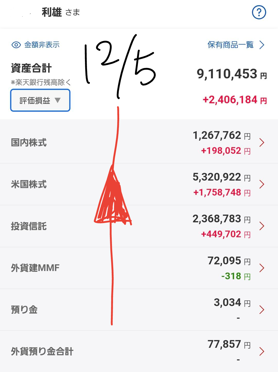 12月5日、私の資産合計はわずかですがプラス圏で着地することができました。