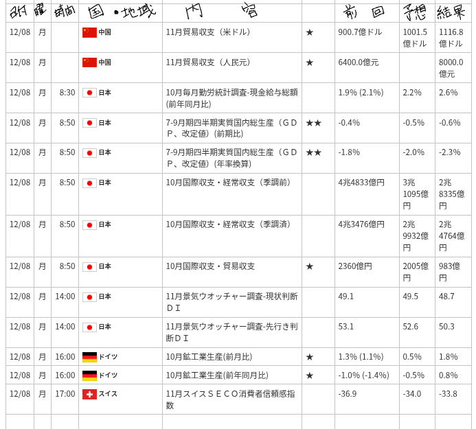 12月8日(月)は、日本のGDP改定値という非常に重要な指標が発表されました。