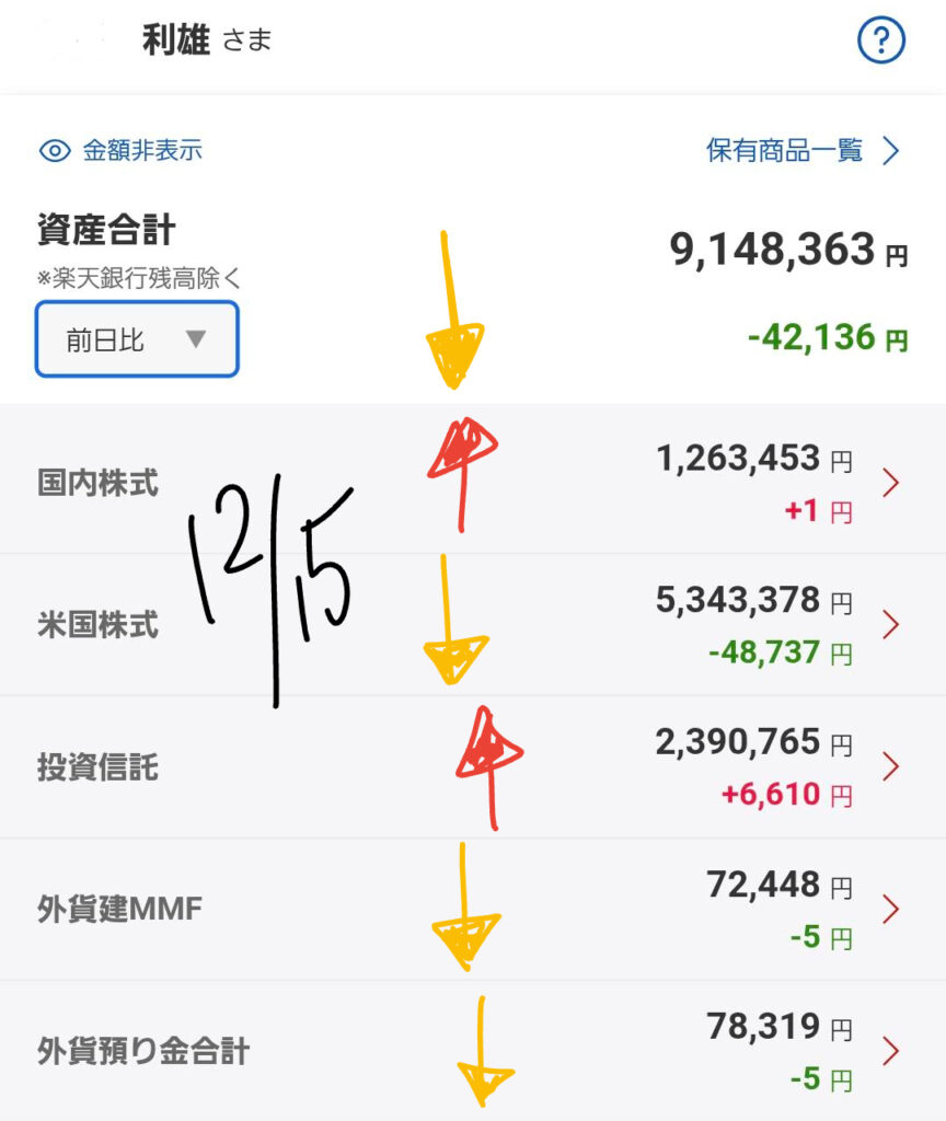 🚀 【速報】12月15日の私の資産状況を公開!米国株の下落を他資産がカバー!