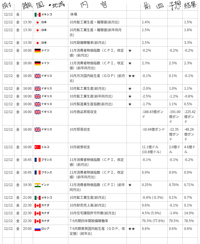 本日(12/15)は、日本とカナダの指標に特に注目しています。