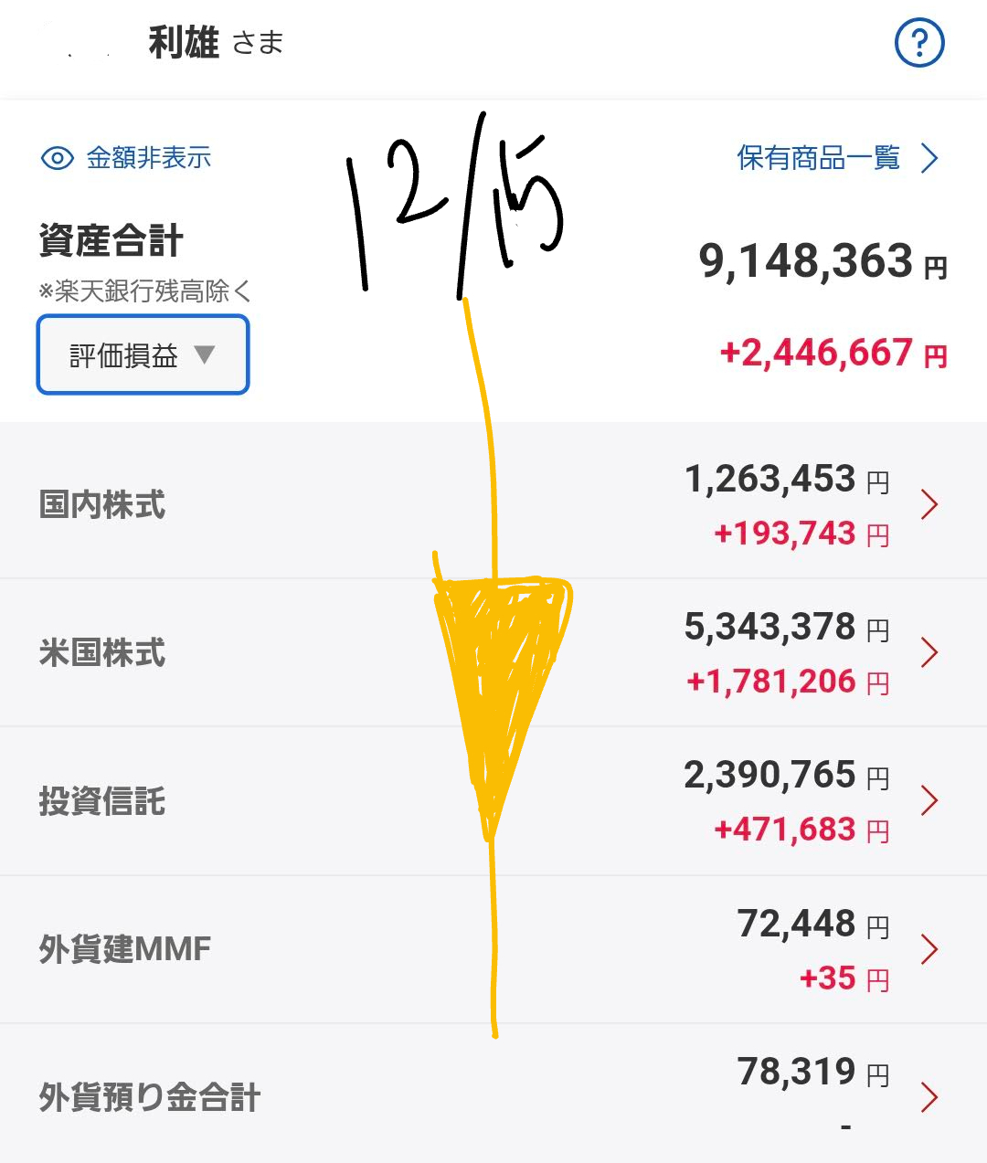 🚀 【速報】12月15日の私の資産状況を公開!米国株の下落を他資産がカバー!