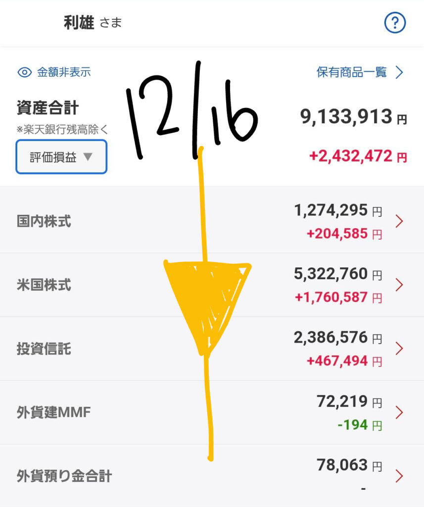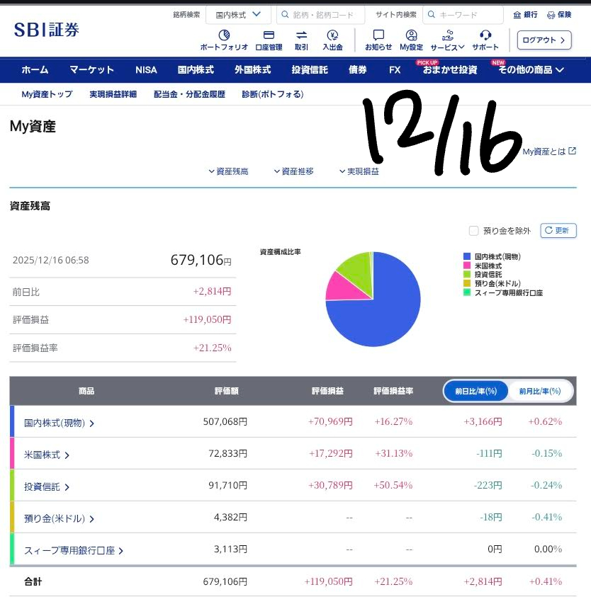 2025年12月16日、本日の資産状況をご報告させていただきます。