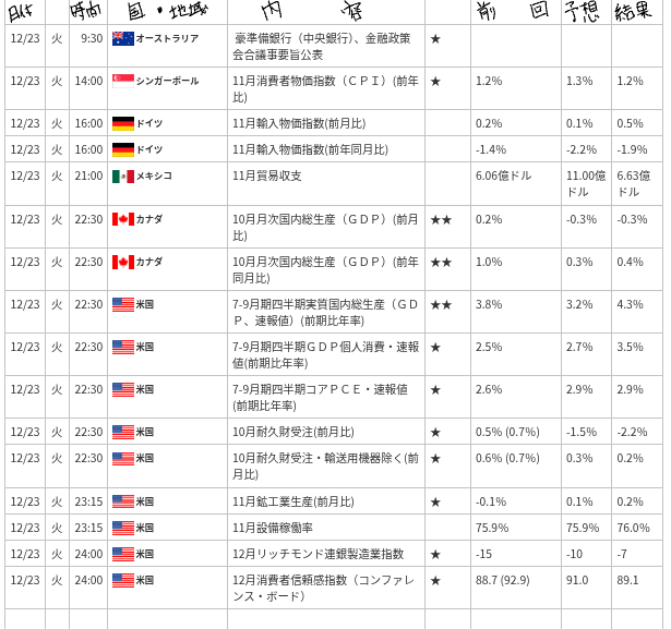 12月23日の指標発表は、米国の景気の強さが改めて浮き彫りになる一方で、今後の減速リスクも示唆される内容となりました。