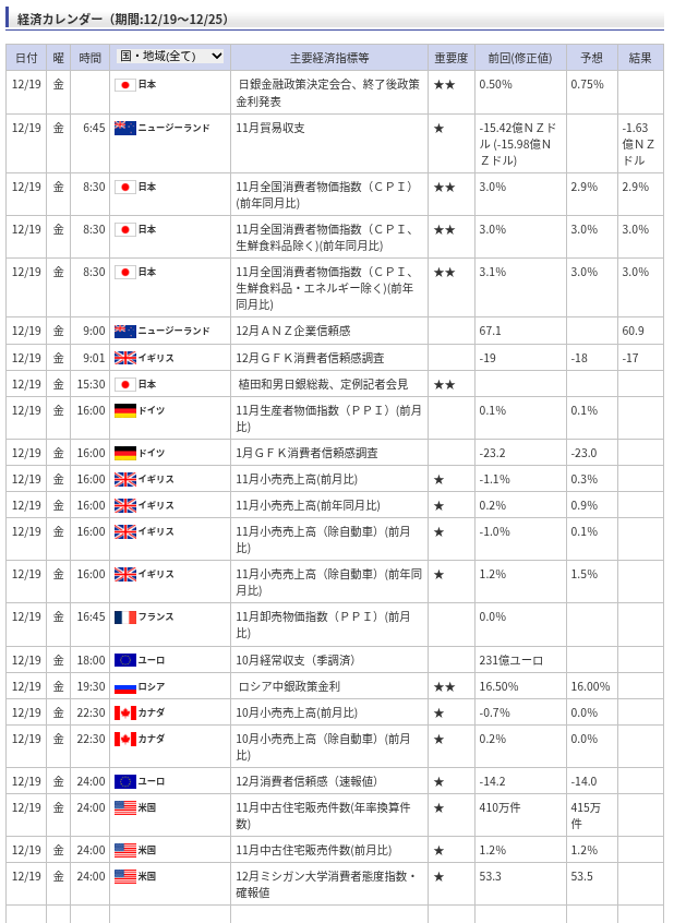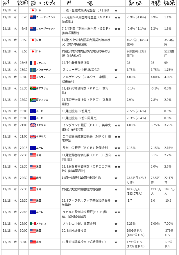 アップロードいただいた12月18日(木)の主要経済指標の結果を、国・地域ごとに整理して詳しく解説します。