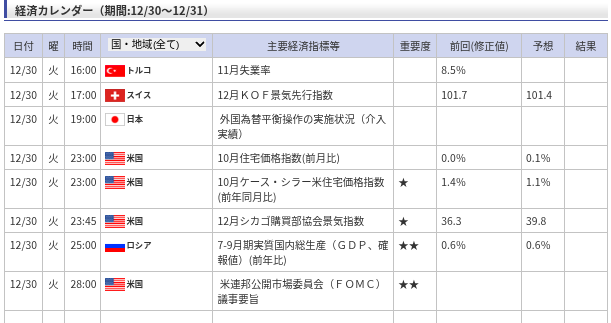 今後の投資戦略を考える上で、本日(12/30)夜に発表される以下のイベントに注目しています。