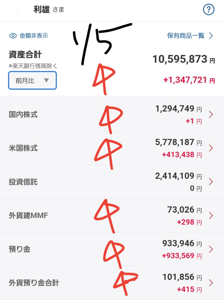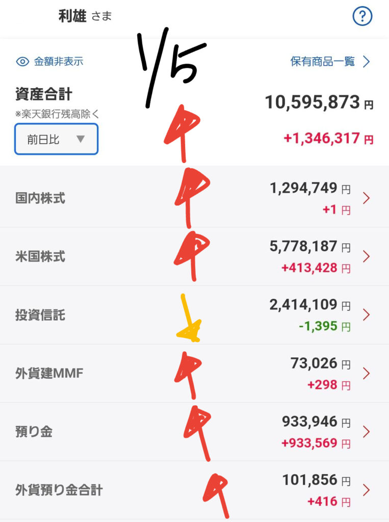 | 預り金・MMF | 1,289,496円 | +934,283円 | ⬆️ |