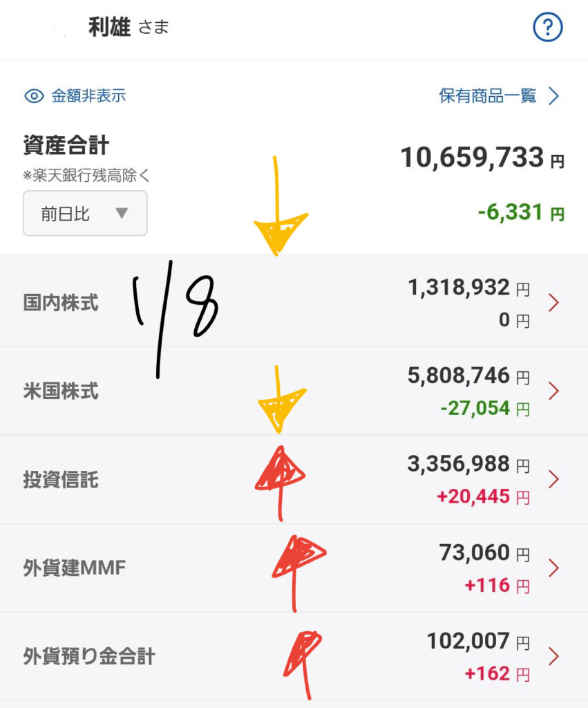 | 外貨建MMF | +116円 | ⬆️ |