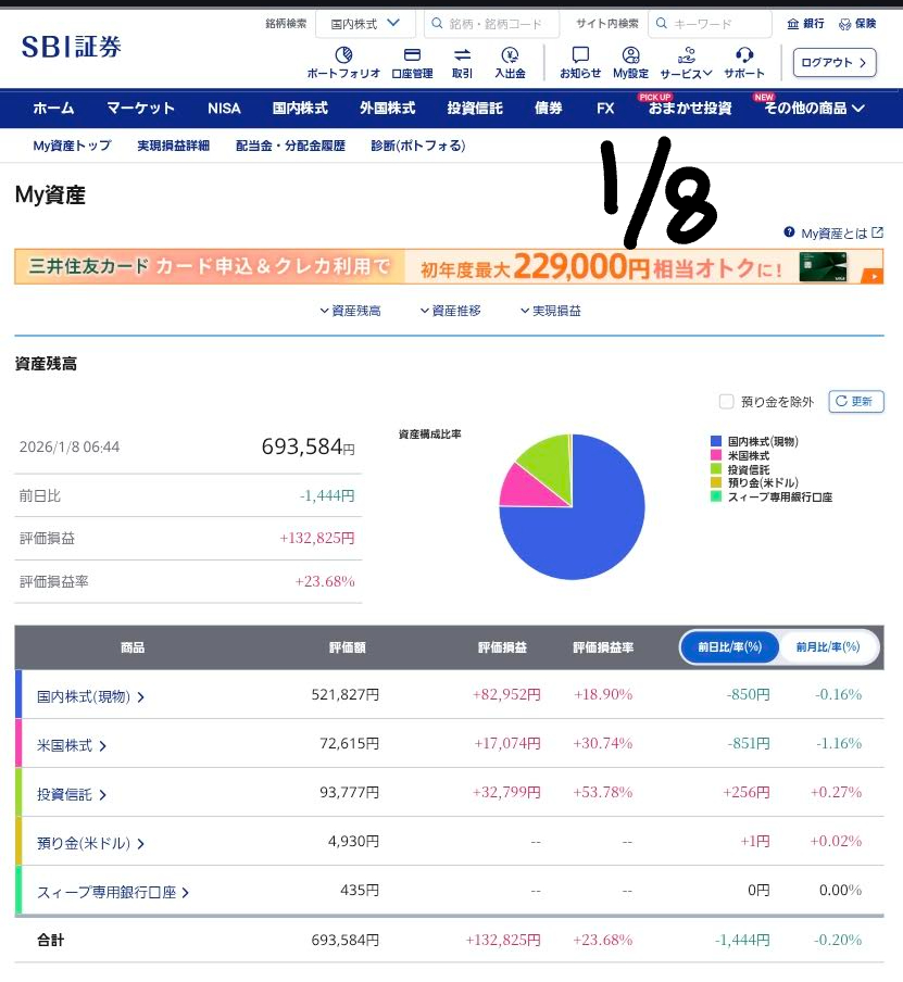 2026年1月8日現在の、私のポートフォリオの運用状況について詳しく解説します。