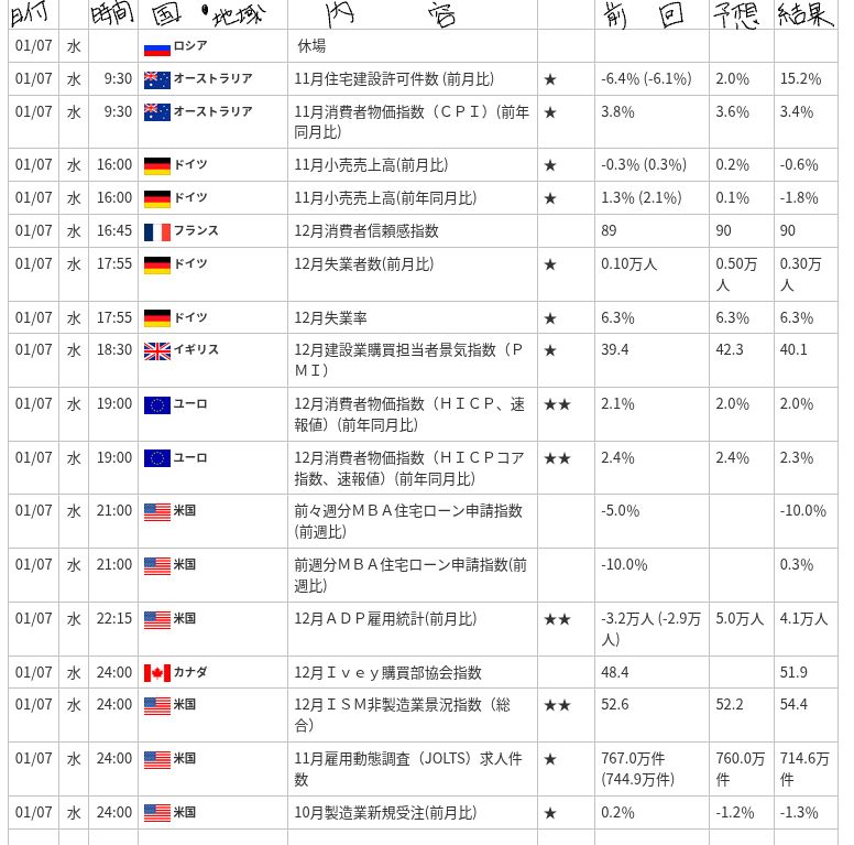 | 12月ADP雇用統計 | -3.2万人 | 5.0万人 | 4.1万人 | ⬆️ |