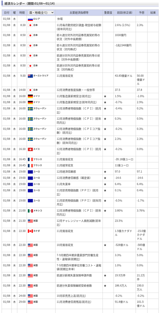 ≪経済カレンダー≫