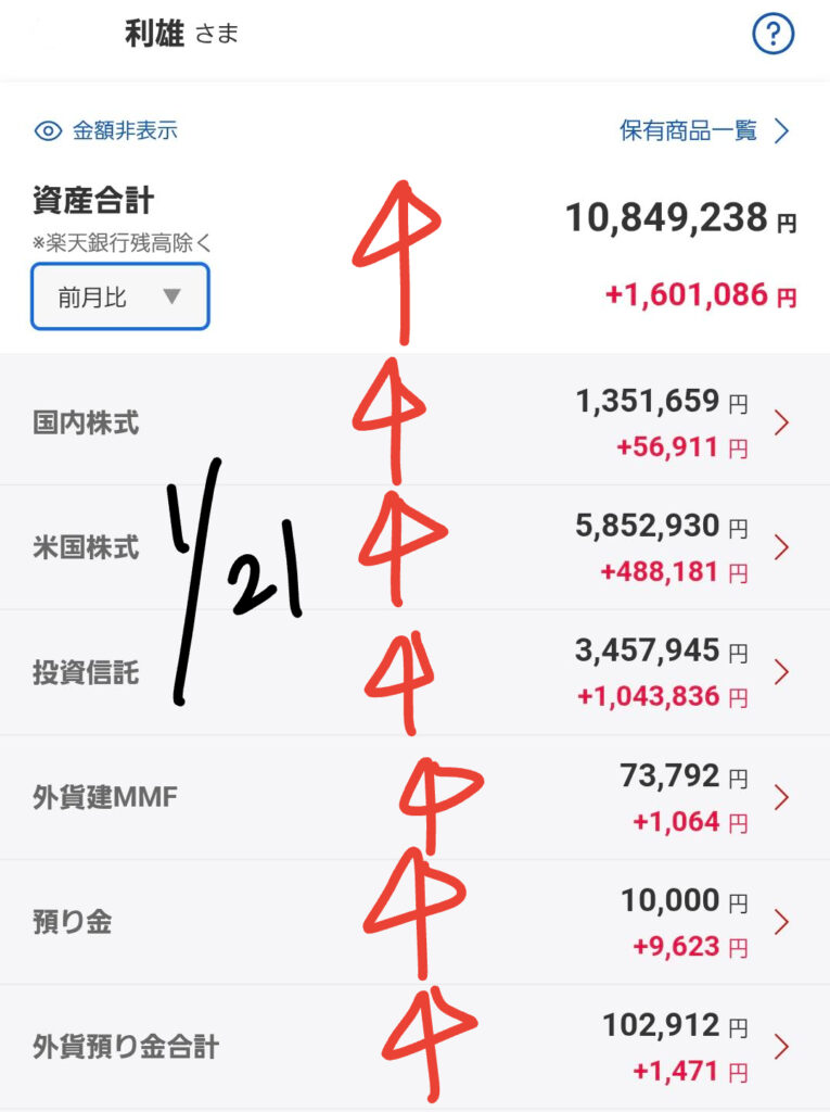 本日の私の資産状況を総括すると、以下のようになります。