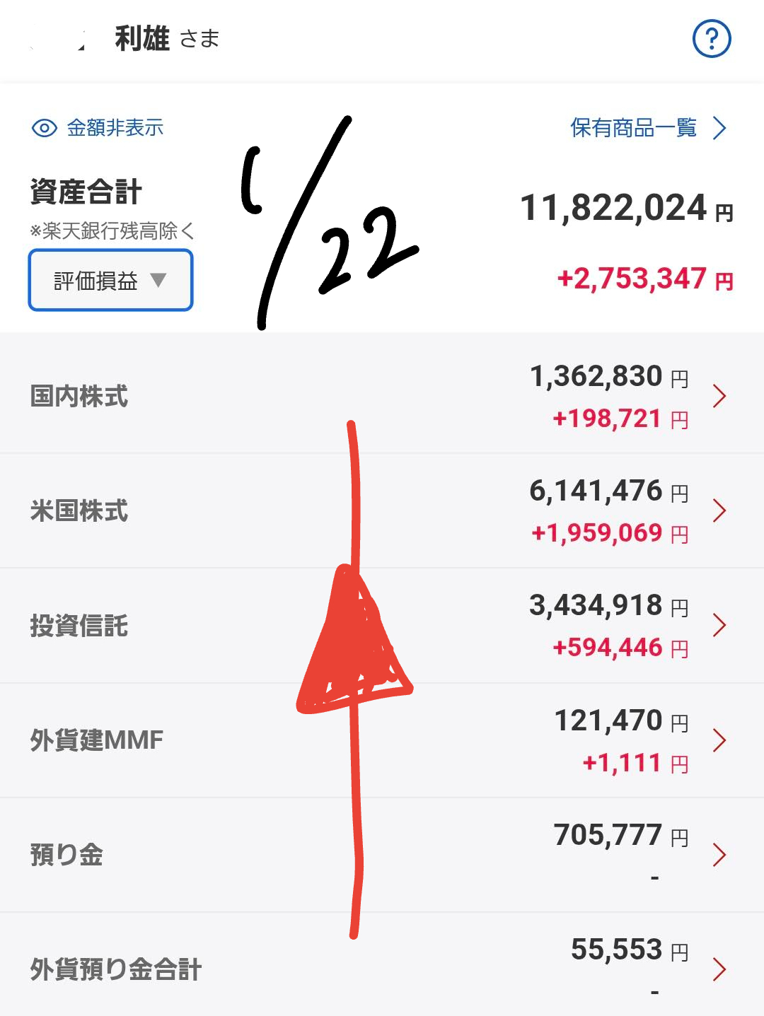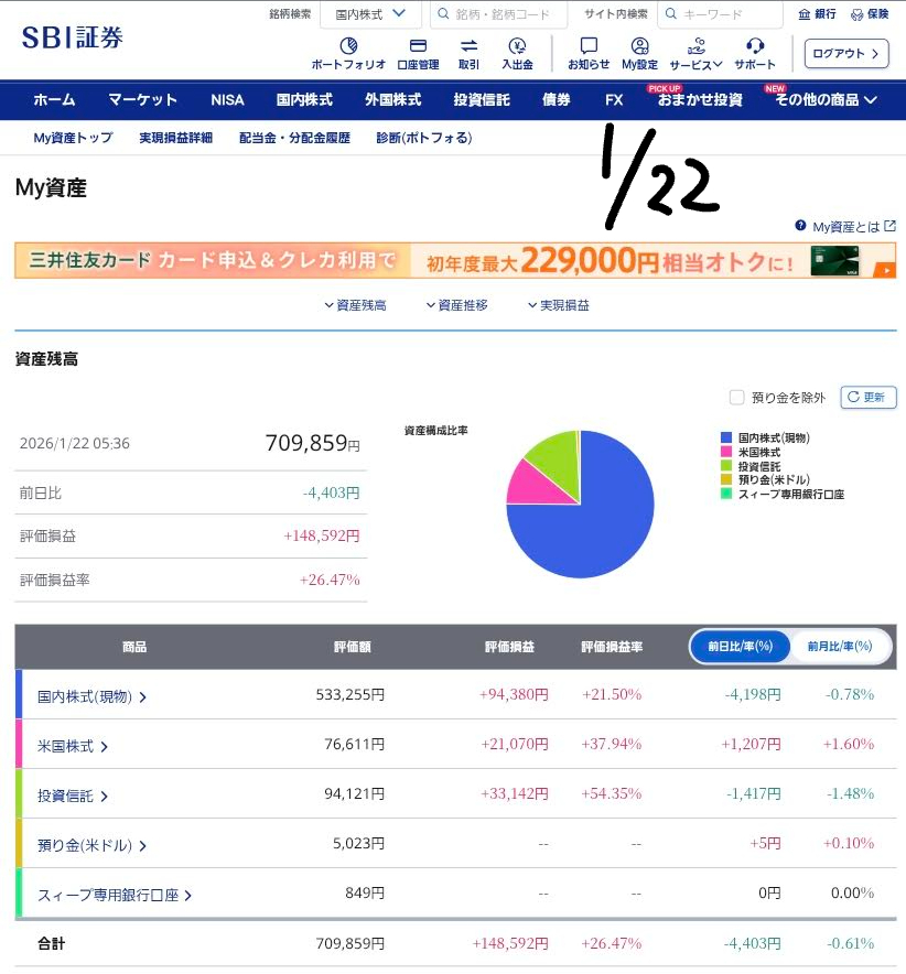 2026年1月22日 ポートフォリオ運用状況:米株の大幅上昇を受け、総資産は堅調に推移