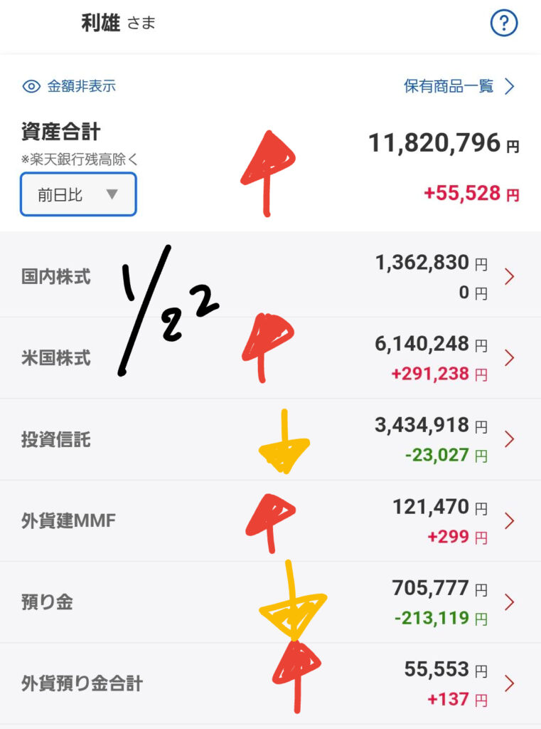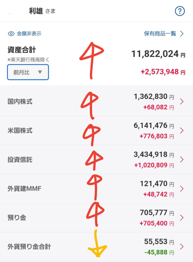 昨夜の米国市場は非常に力強い動きを見せ、私の資産合計も前日比でプラスとなりました。