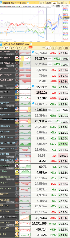 - 米国株式: 前日比 +1,207円 ⬆️