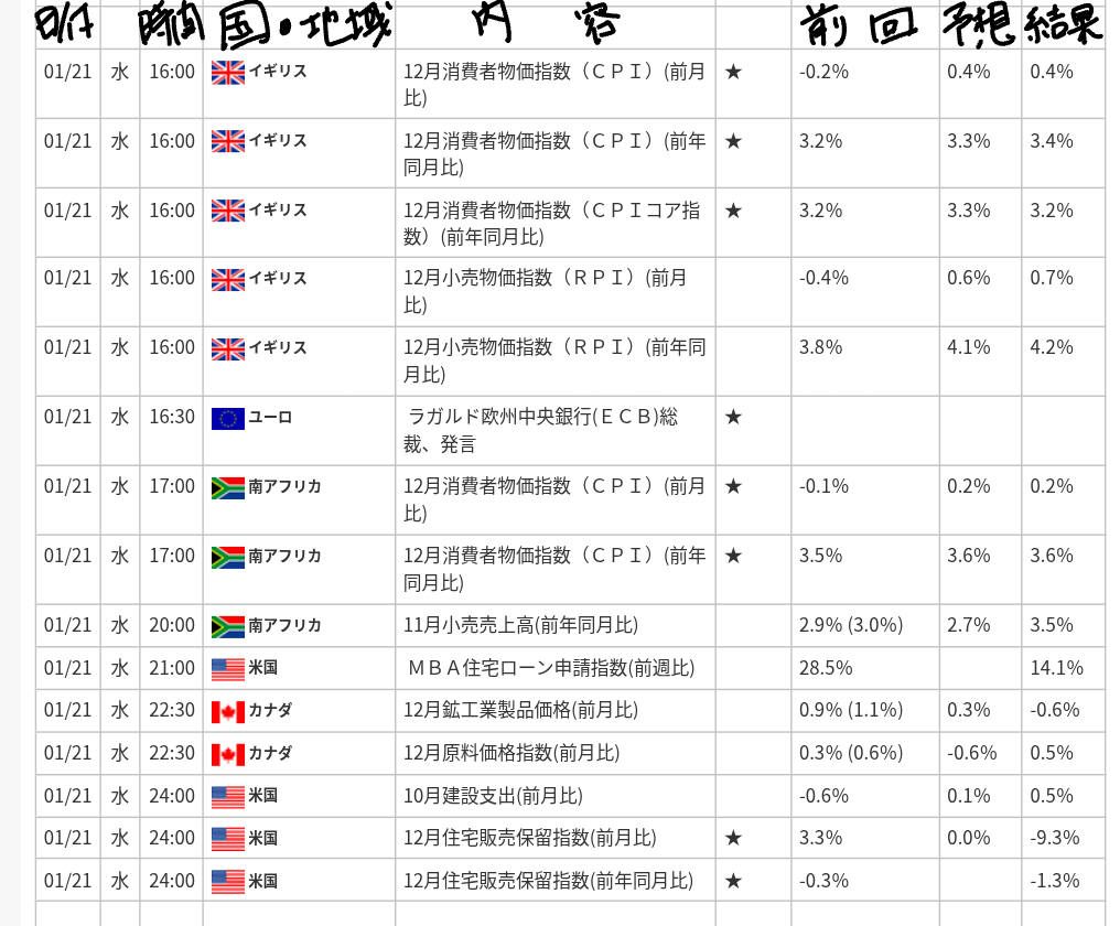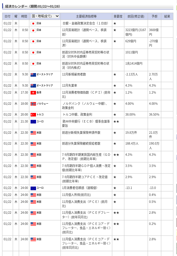 ≪経済カレンダー≫