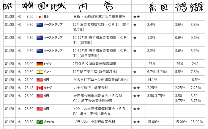 1月28日は、主要国の中央銀行(米国・カナダ・ブラジル)が揃って政策金利を据え置くという、安定重視の一日となりました。