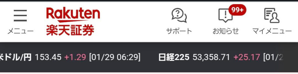 ドル円相場は、1月29日朝時点で**153.45円(+1.29円)**と、大きく円安・ドル高に振れています。私のポートフォリオは米国株式の比率が高いため、この為替差益が資産総額の下支えとなりました。