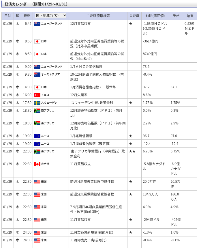 | 国・指標名 | 前回 | 予想 | 結果 | トレンド |