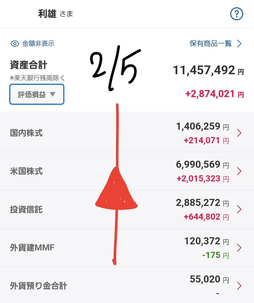 | 外貨建MMF | +484円 | ⬆️ |