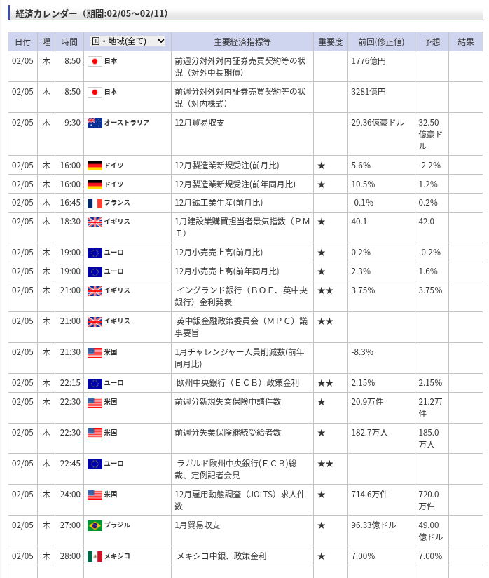 ≪経済カレンダー≫