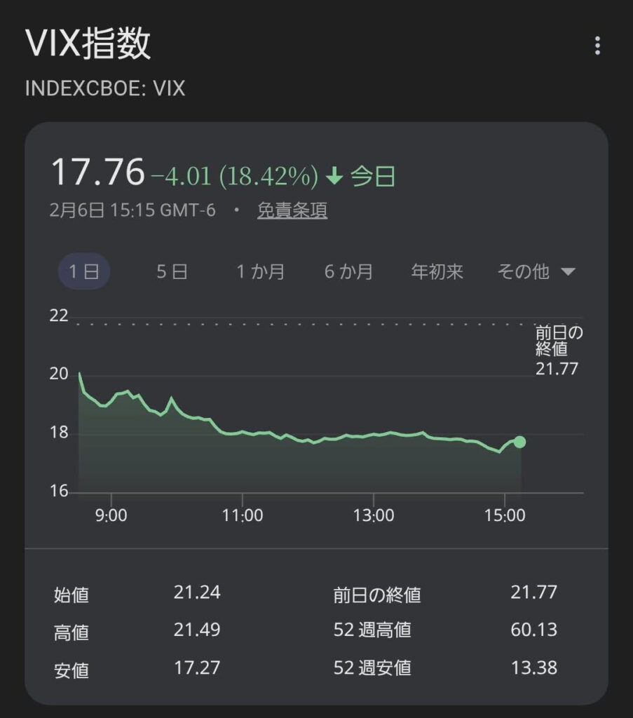ご参考までに「SMBC日興証券」さんの用語集を引用します。VIX指数とはhttps://www.smbcnikko.co.jp/terms/eng/v/E0063.html