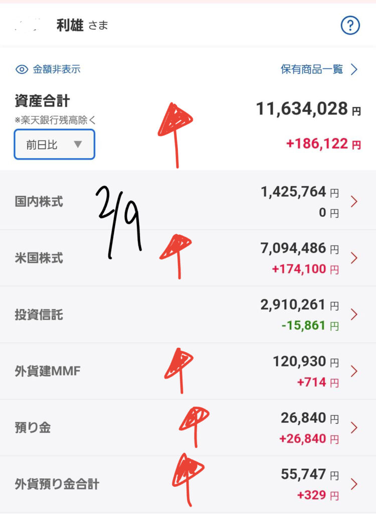 | 資産合計(楽天証券等) | +186,122 円 | ⬆️ |