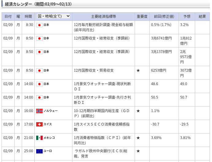 - 2/09 21:00 (メキシコ): 1月消費者物価指数(CPI) ➡︎ 新興国通貨の動向