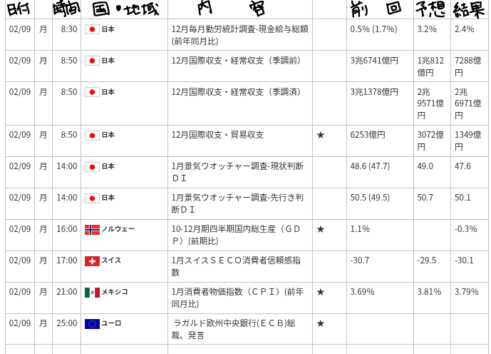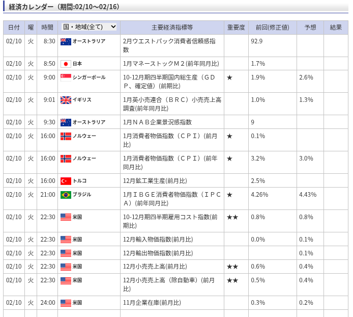 ≪経済カレンダー≫