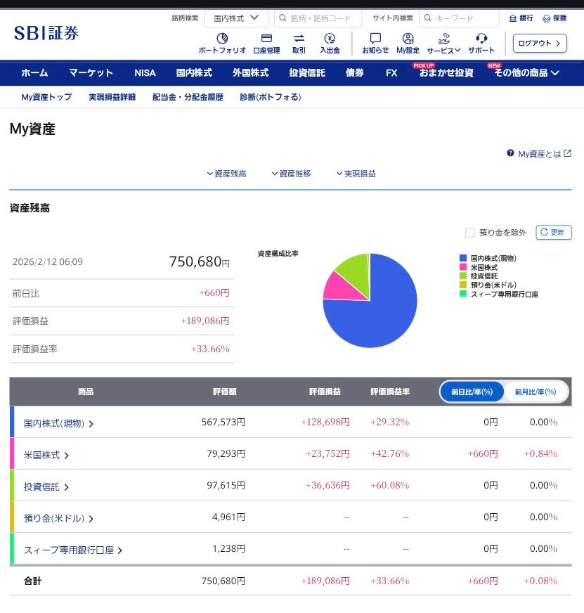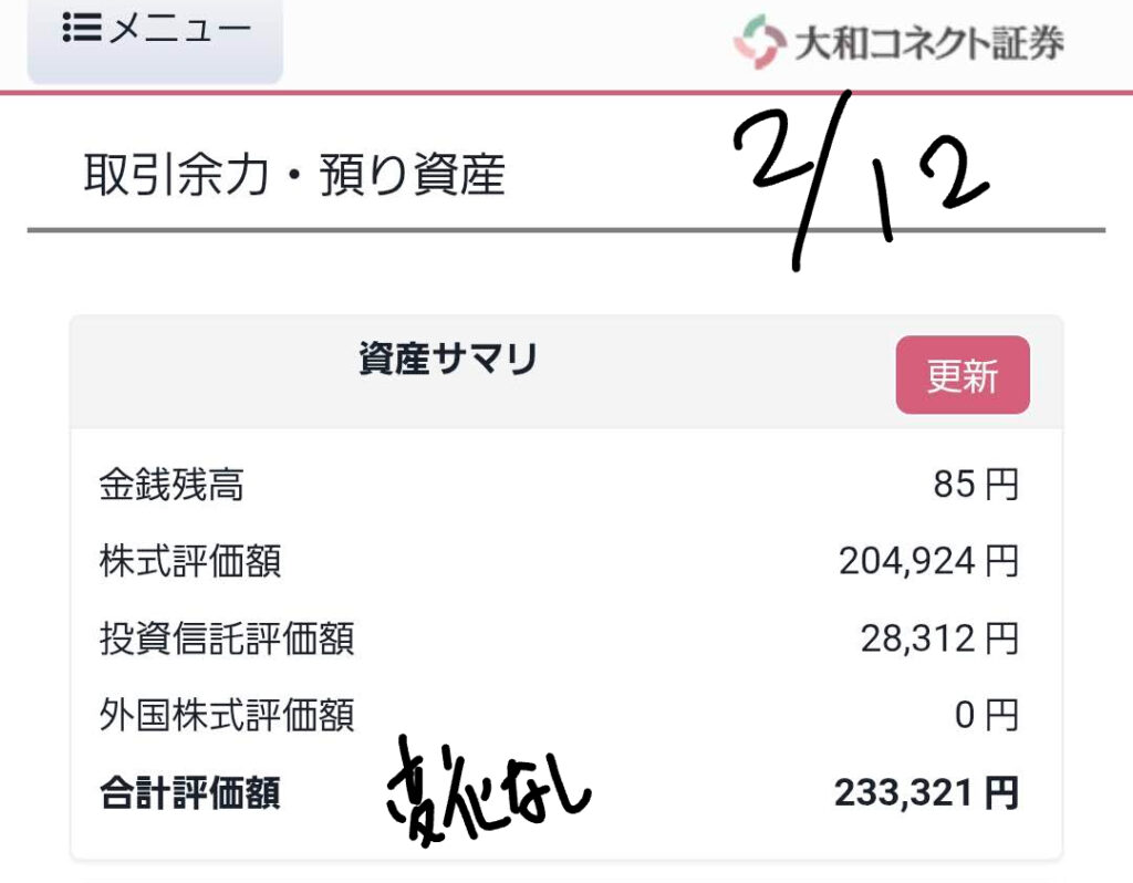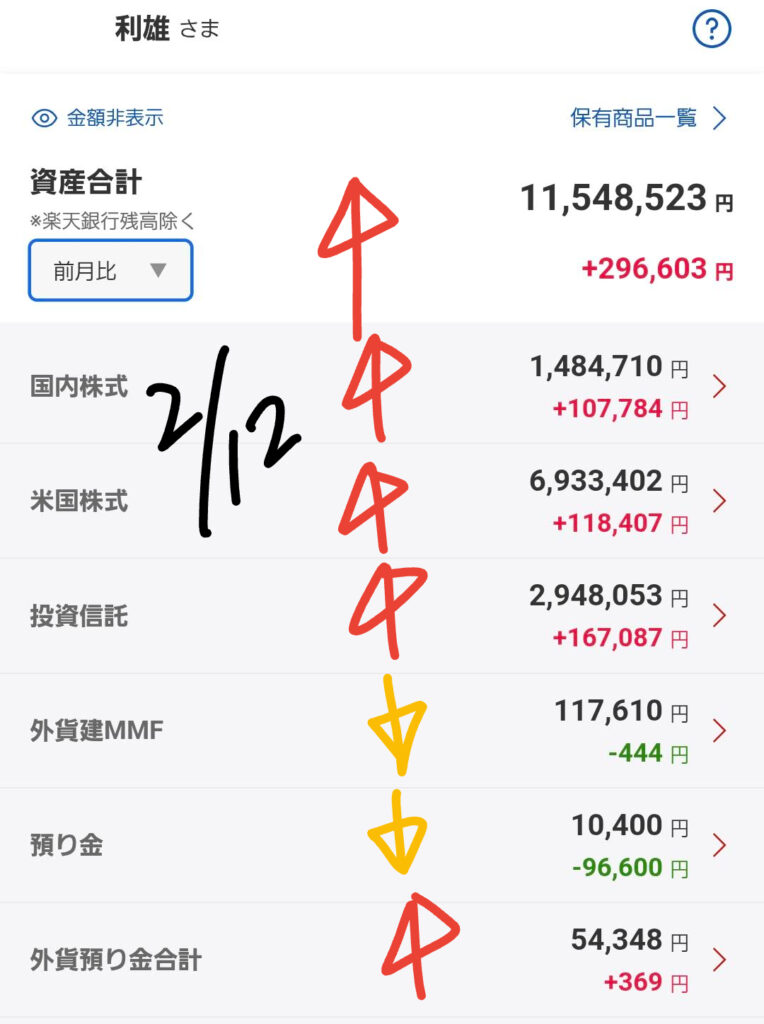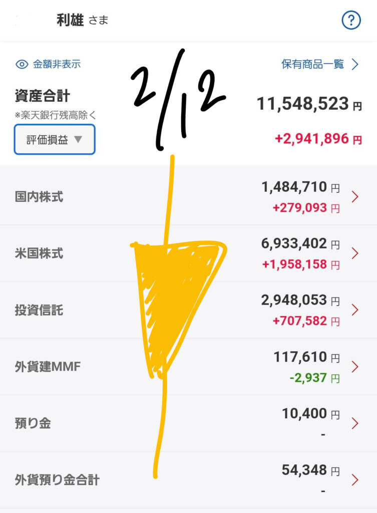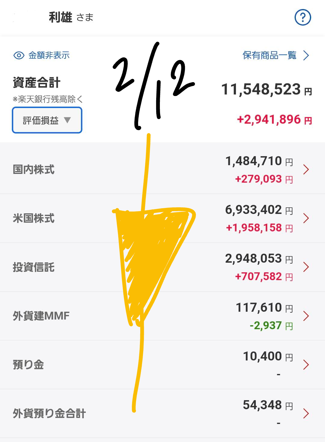 本日は2月12日時点の私の資産状況について、誠実にシェアさせていただきます。昨日は日本が祝日(建国記念の日)でお休みでしたが、世界市場、特に米国では重要な経済指標の発表があり、私のポートフォリオにも動きがありました。