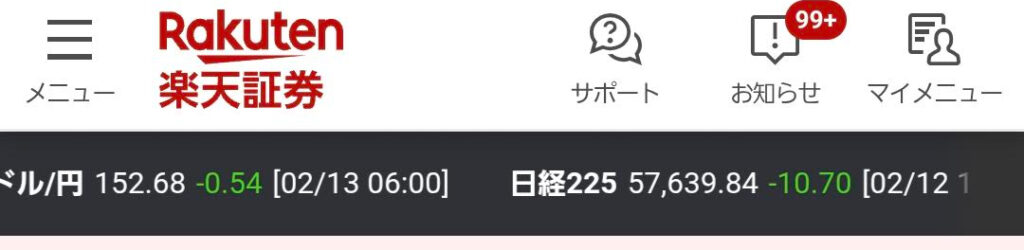 | 日経平均(2/12) | 57,639.84円 | ⬇️ | 小幅な動きに留まる。 |