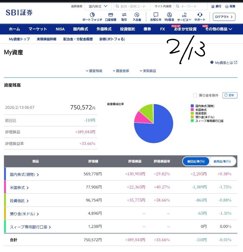2026年2月13日 ポートフォリオ概況
