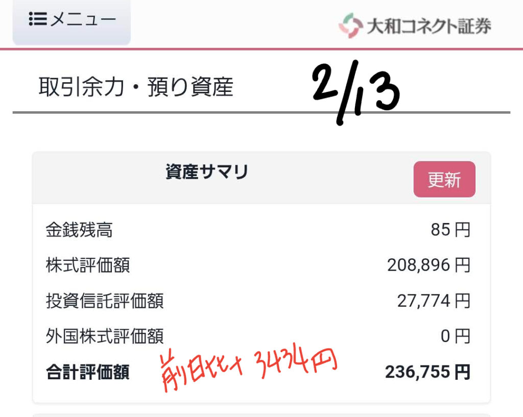 - 大和コネクト証券: 236,755円(前日比 +3,434円 ⬆️)