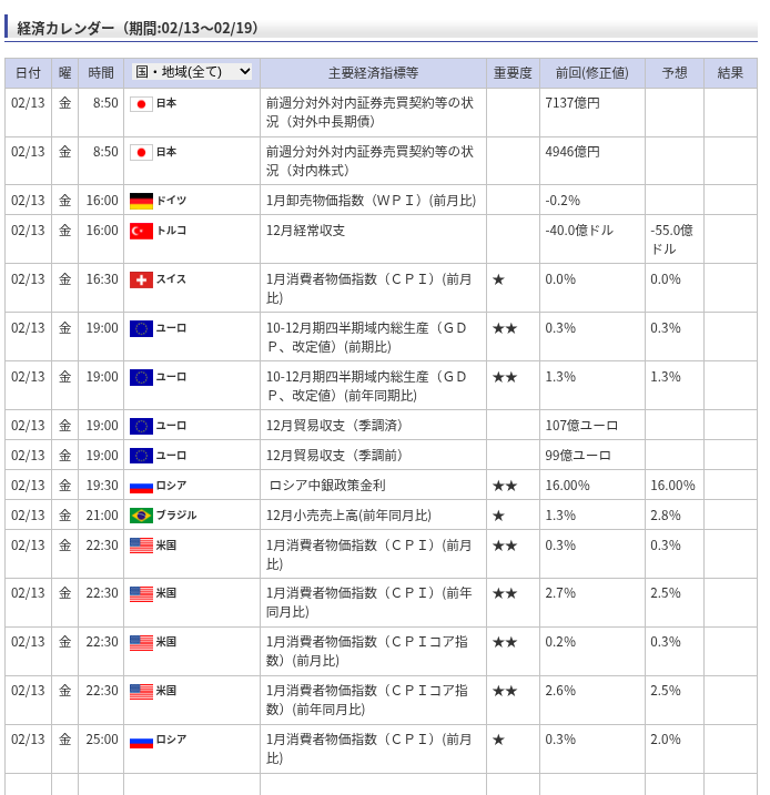 | 国・地域 | 指標内容 | 前回 | 予想 | 結果 |