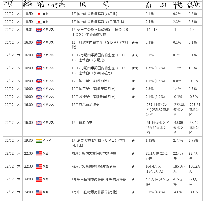 | 🇯🇵 日本 | 1月国内企業物価指数(前年同月比) | 2.4% | 2.3% | 2.3% |