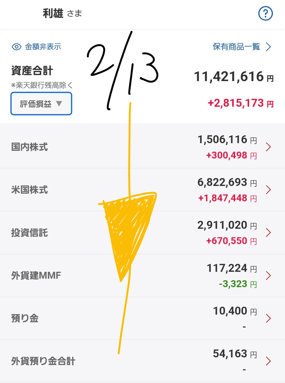 2026年2月13日 ポートフォリオ概況
