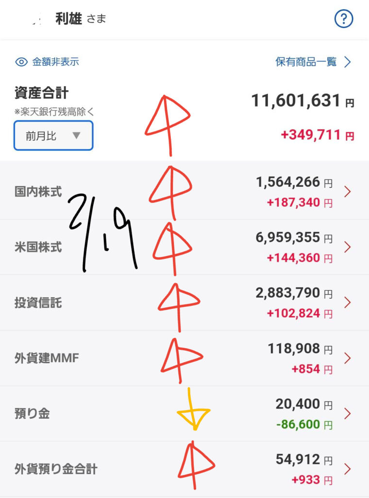 私の個人資産の動きを、昨日のデータ(2月18日時点)に基づき解説します。