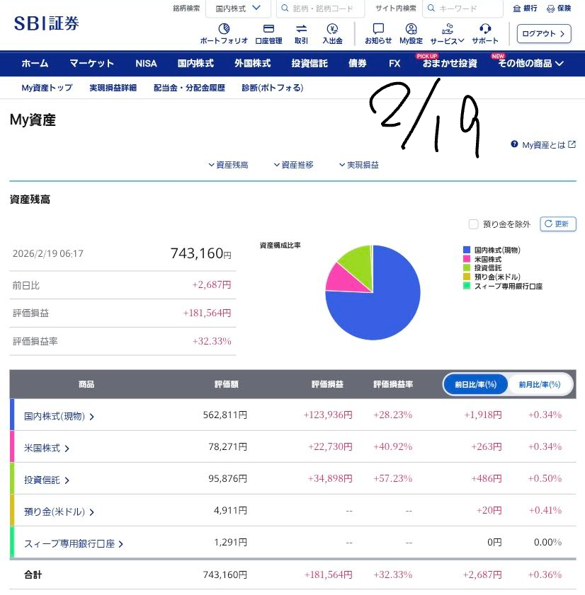 【2026/2/19更新】私の投資ポートフォリオと市場動向の振り返り