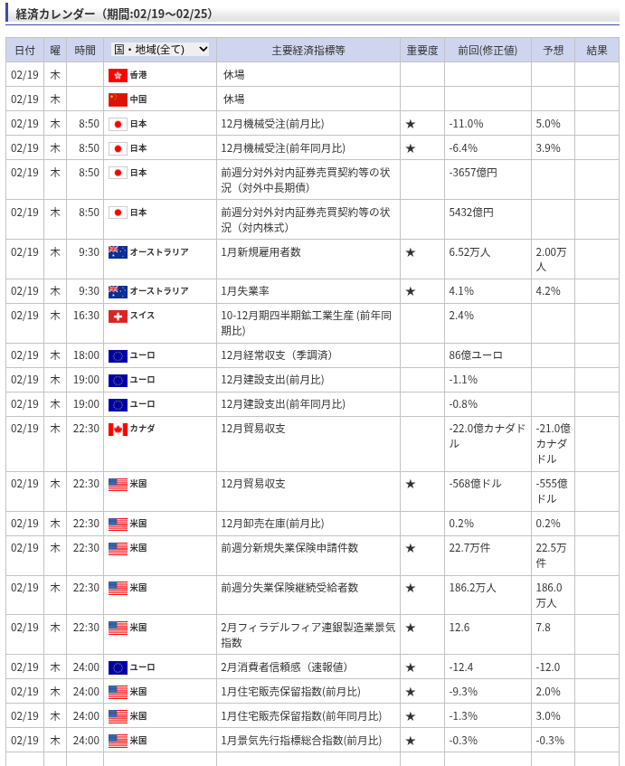 日本決算企業数: 2 社(2月19日 発表予定分)