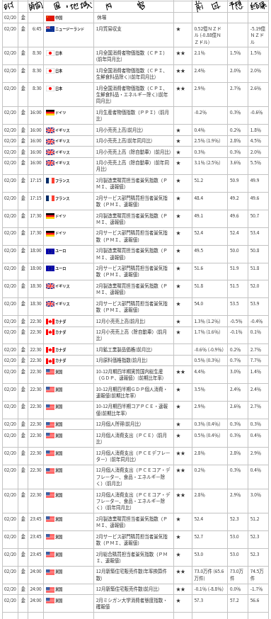 | 1月全国消費者物価指数(CPI、生鮮食品除く) | 2.4% | 2.0% | 2.0% |