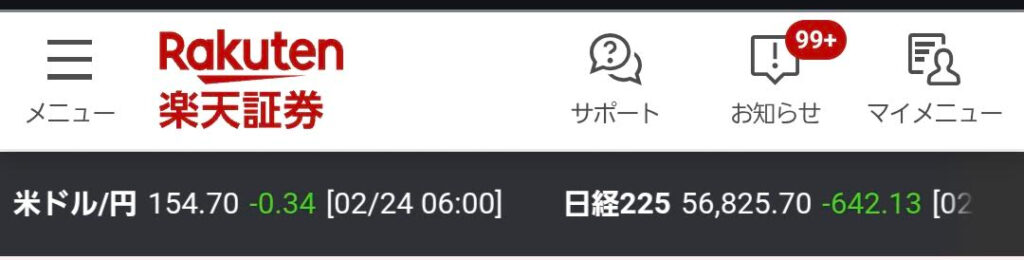 日経平均(現物) 56,825.70 円(前日比 ⬇️)引用:画像2枚目 最上段「日経平均株価」