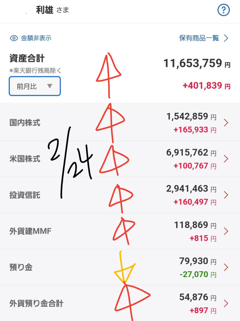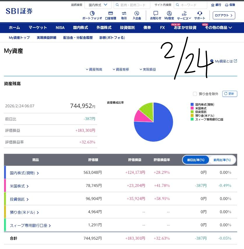 2026年2月24日時点での私のポートフォリオの現状と、昨日の市場動向を踏まえた分析を包み隠さずお伝えします。