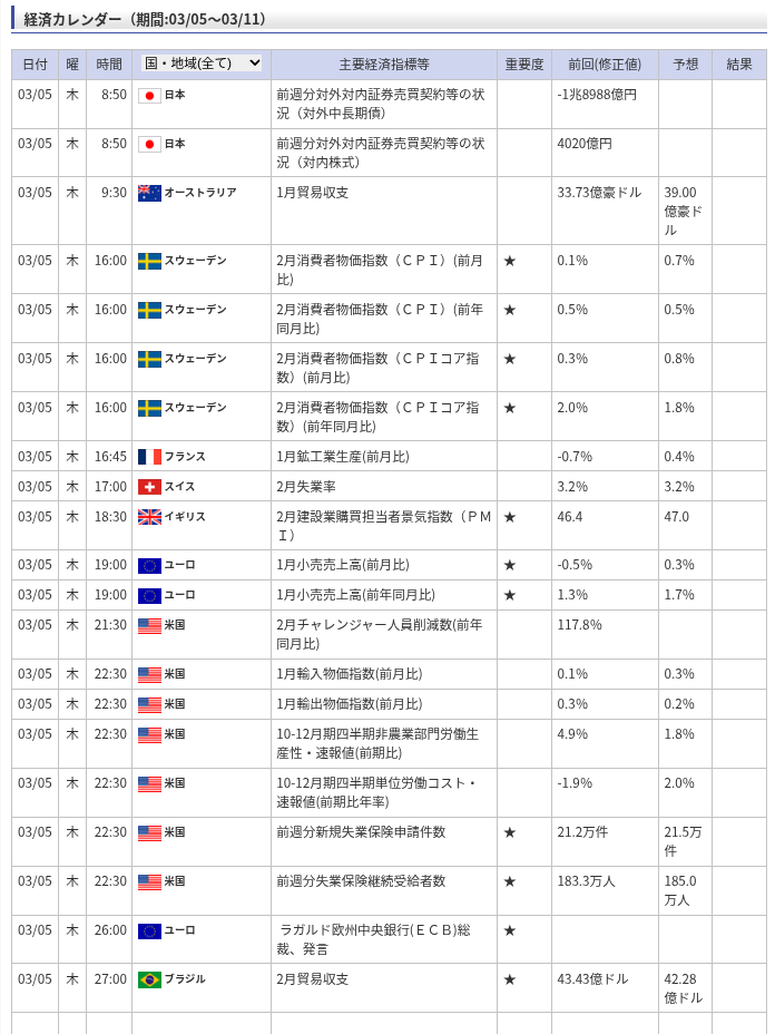 1. 昨日の実績とマーケットの動向(3月4日〜5日早朝)