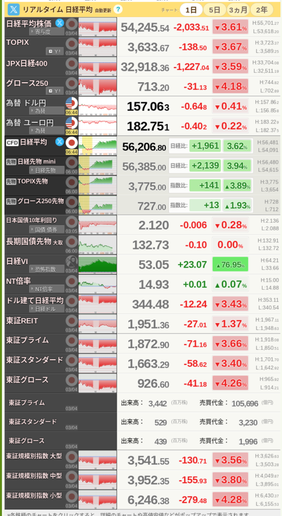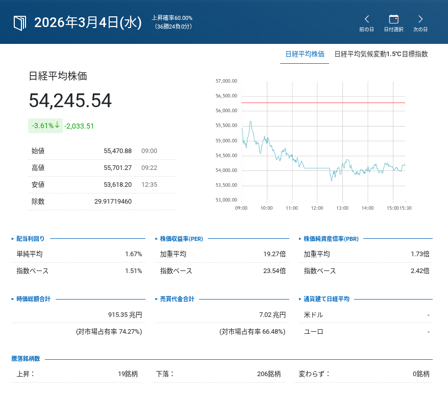 • 日経平均株価(現物): 54,245.54円(前日比 ⬇️ -2,033.51円 / -3.61%)
