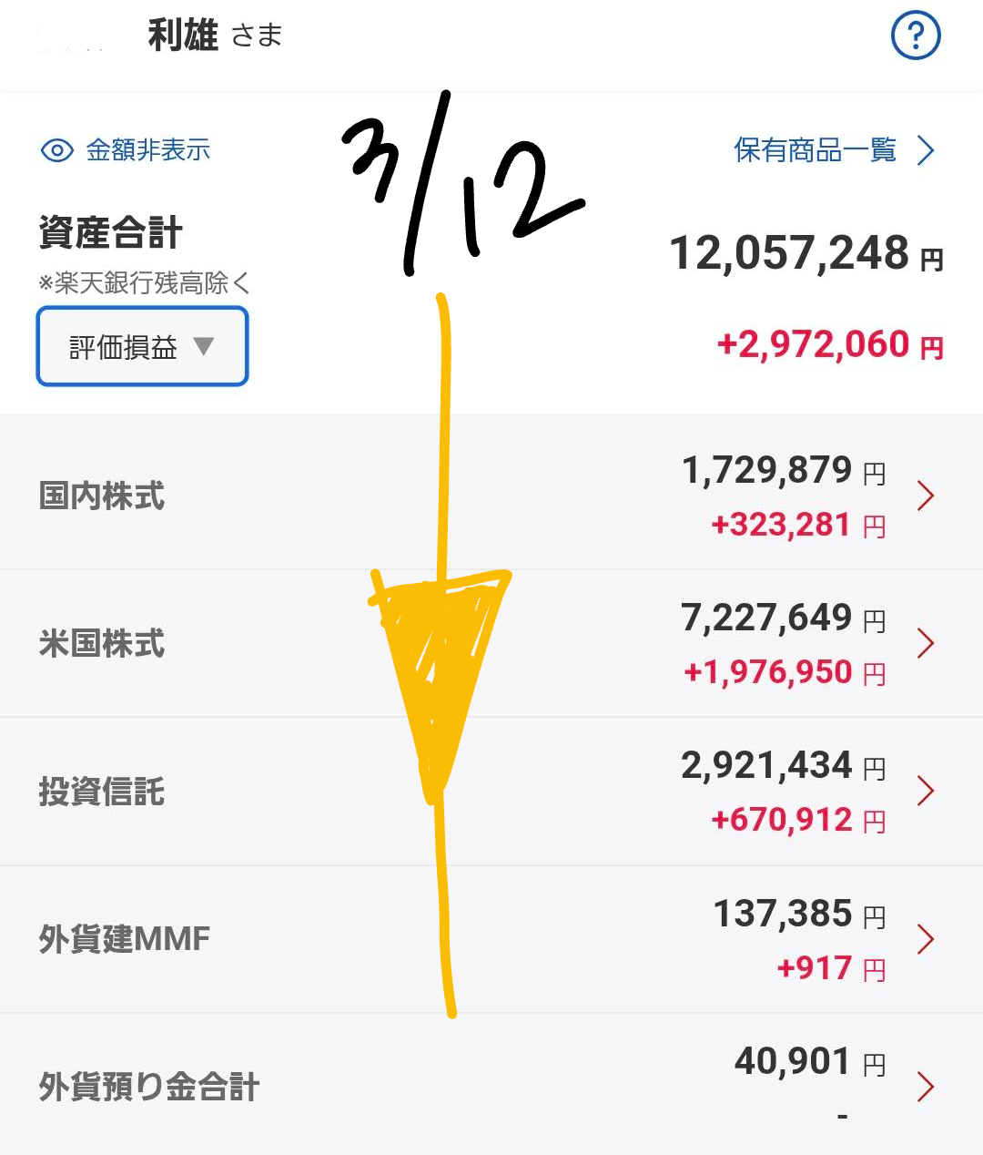 - 投資信託評価額: 前日比 ⬇️ ー18,337円